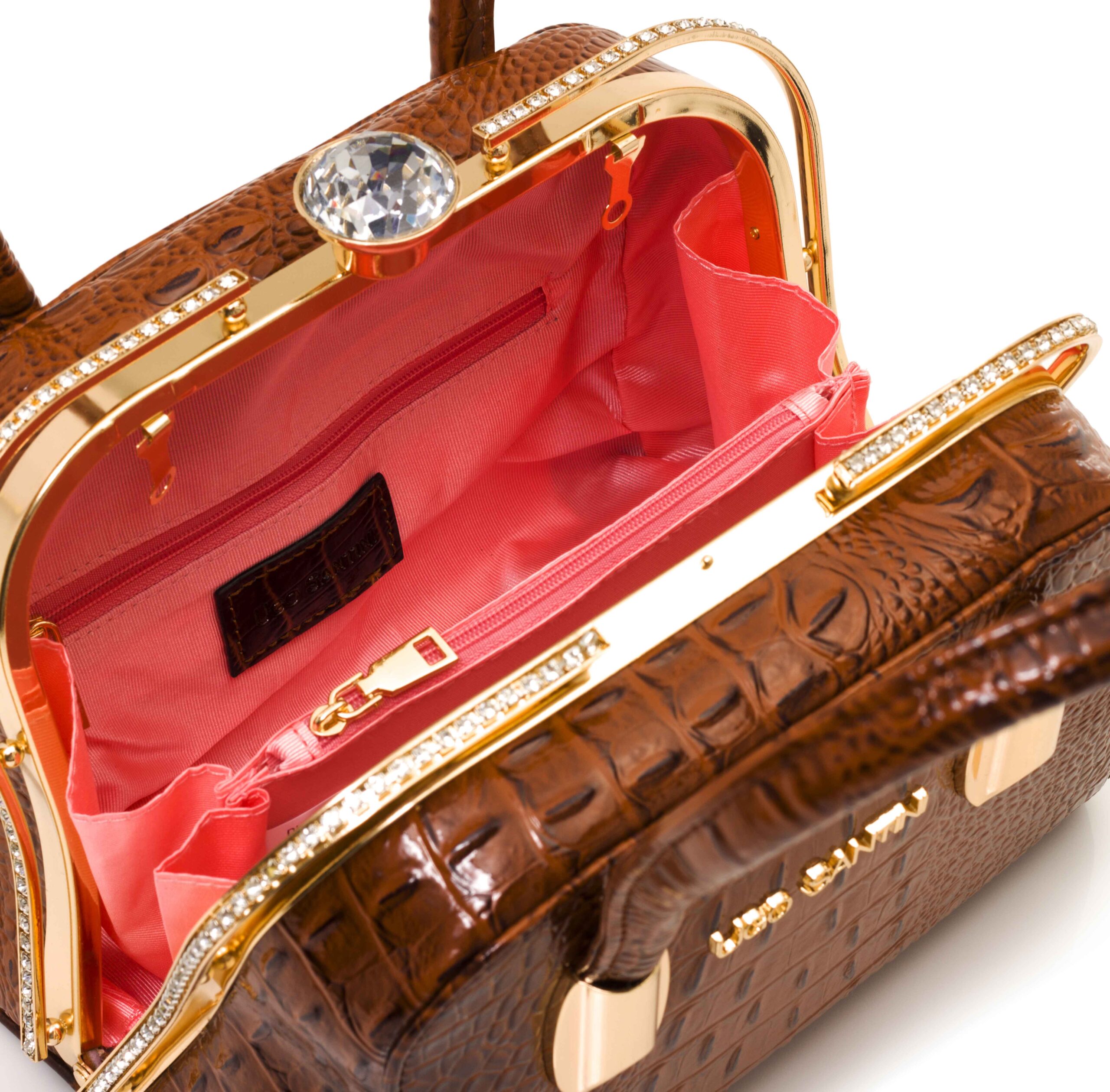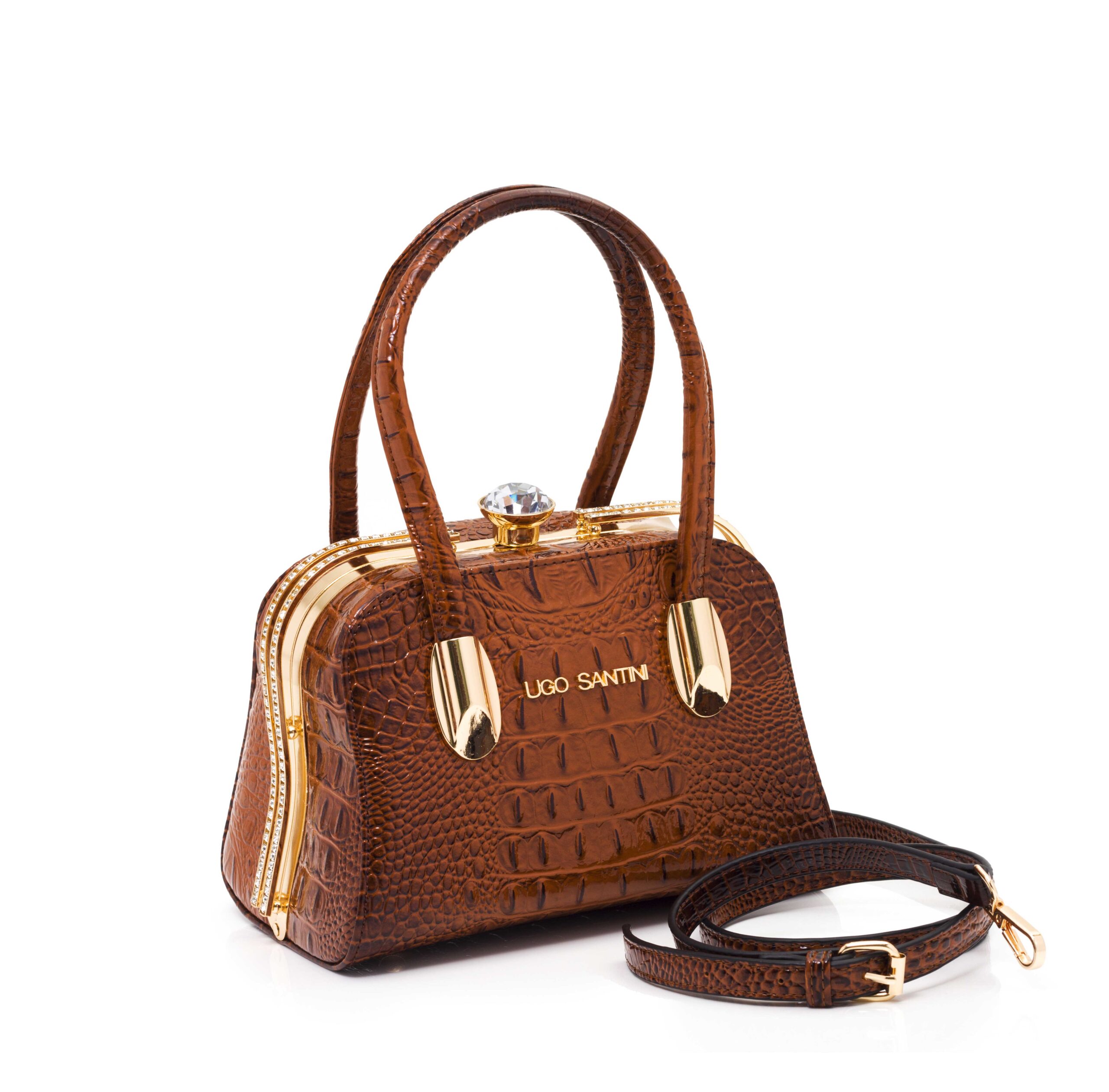 Cartera cuero sintético croco con logo de la firma. Herrajes color oro y broche cierre con diseño. Asa de hombro en cuero sintético con metal y asa desmontable larga de cuero sintético.